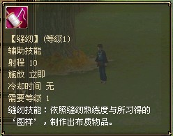关于缝纫 当等级到达19级并且在化巧仙处已经学习了【缝纫】,在装备【缝纫】专用道具【缝纫盒】的前提下便可对采集来的资源进行生产,生产必须要有【图样】,可以在各大主城的【聚木童子】处用游戏币获得,此外,野外BOSS,副本BOSS,以及副本通关后的宝箱中也有几率获得稀有的【图样】。随着【缝纫】等级的提升,可生产的装备等级也随之提升。
